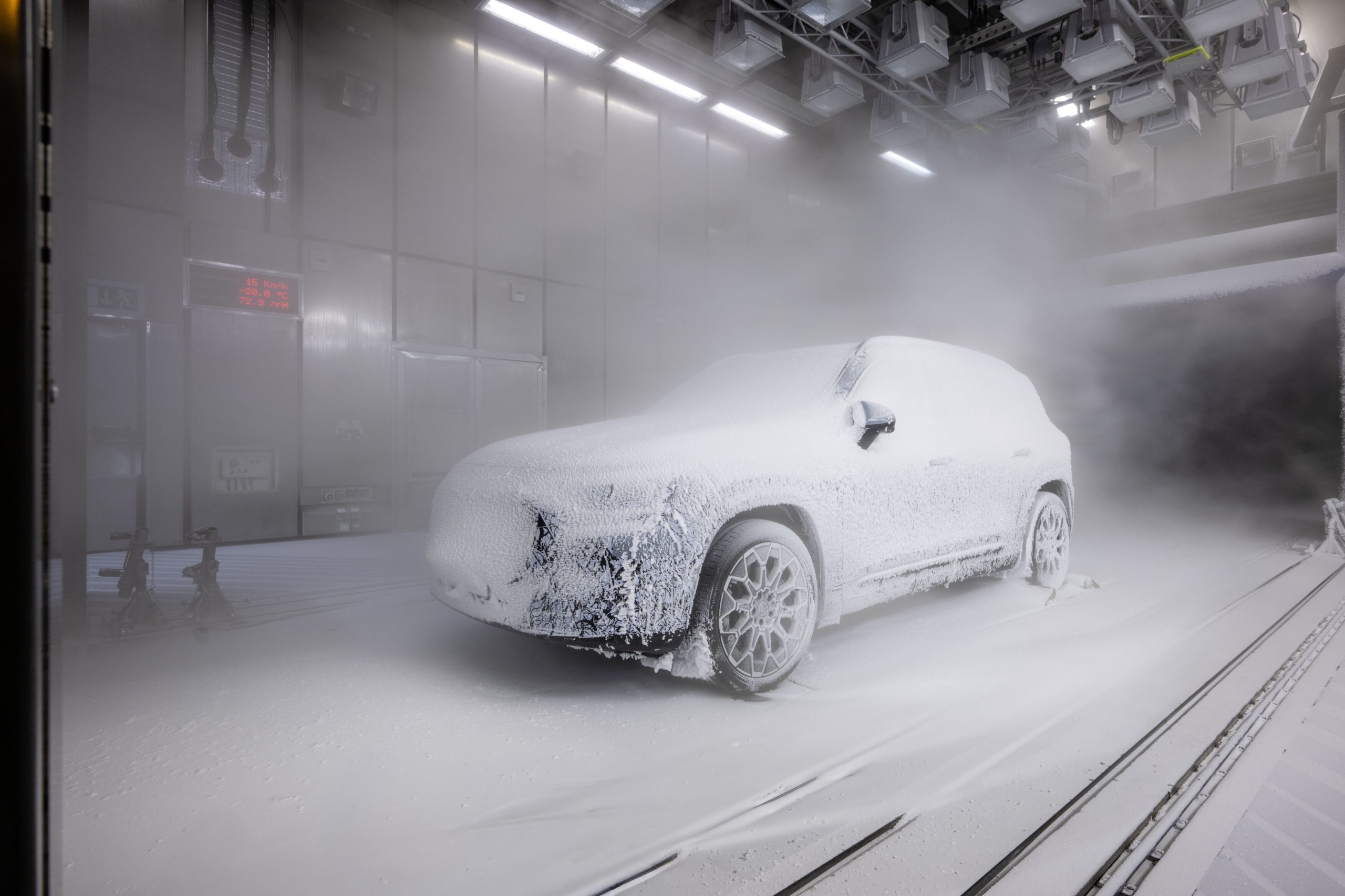 In the climatic wind tunnels, almost every weather condition can be simulated all year round – and with very low tolerances. Unlike tests on public roads, the measurements are reproducible at any time. The cold chamber helps Mercedes‑Benz to further close the gap between simulation and practical testing, and to continuously improve vehicle quality through even more comprehensive tests.