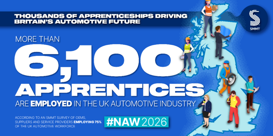 Monday 9 February, 2026 Britain’s automotive industry is in the midst of a major skills drive with the number of apprentices in the sector rising by 33% and new starters up 28% in 2025, according to a new survey of major employers by the Society of Motor Manufacturers and Traders (SMMT).1 There were 1,699 apprenticeship starts in the last academic year, while a further 1,824 apprenticeship courses were provided to upskill existing workers in their current role.